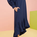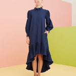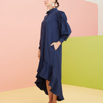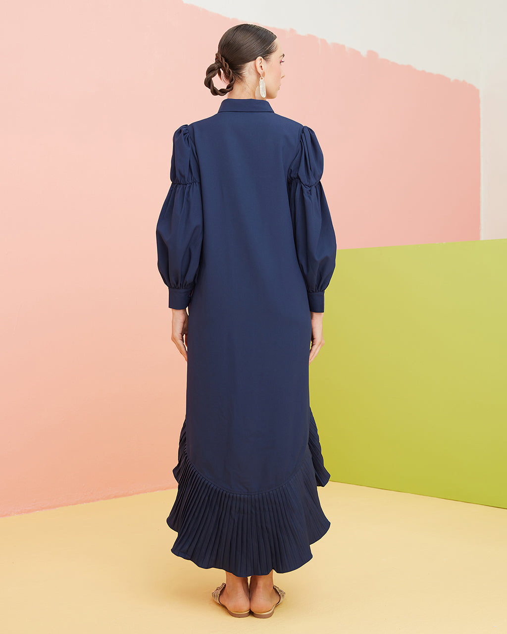 Shirt Dress with Virago Sleeves and Hi Low Pleated Hem