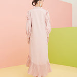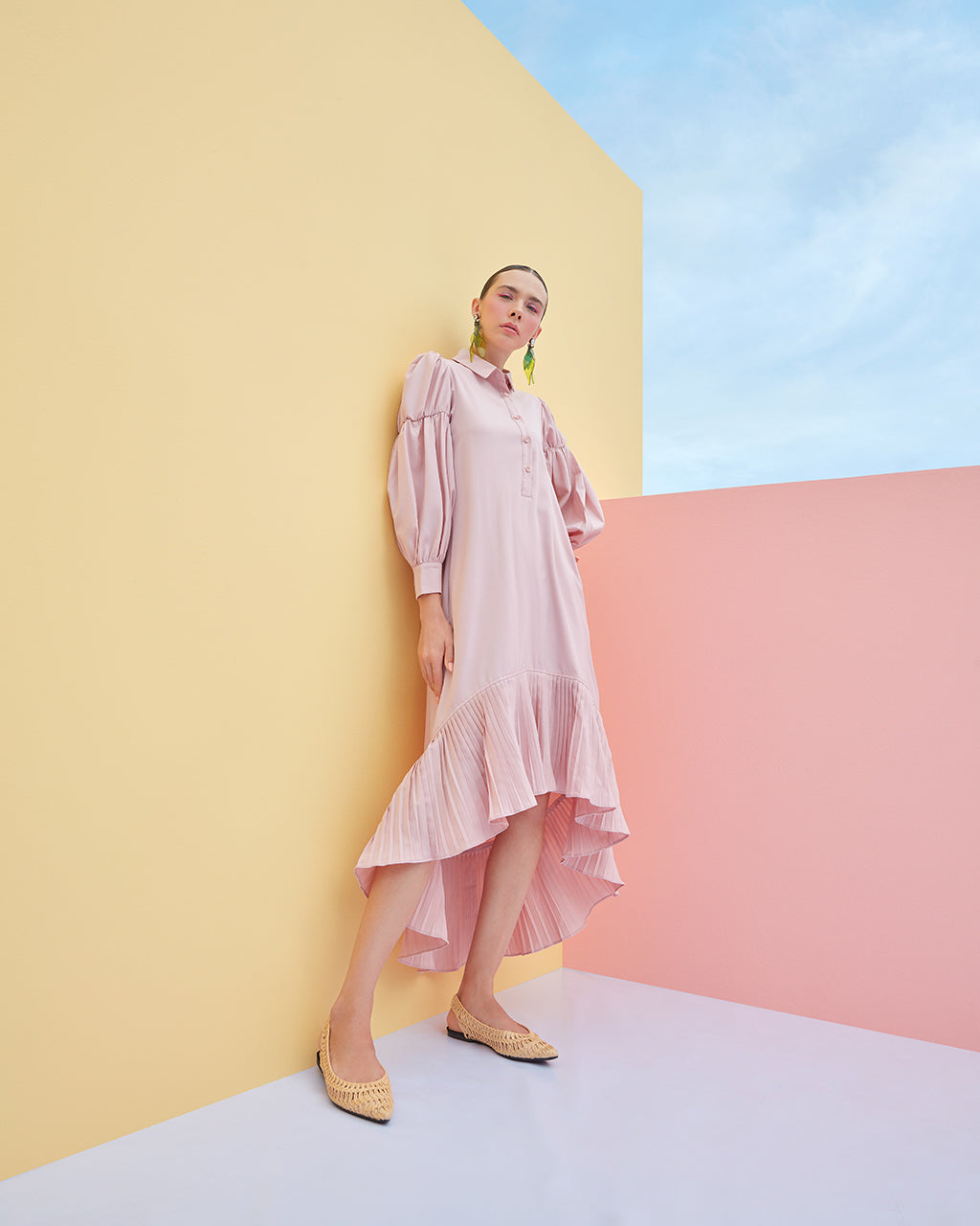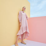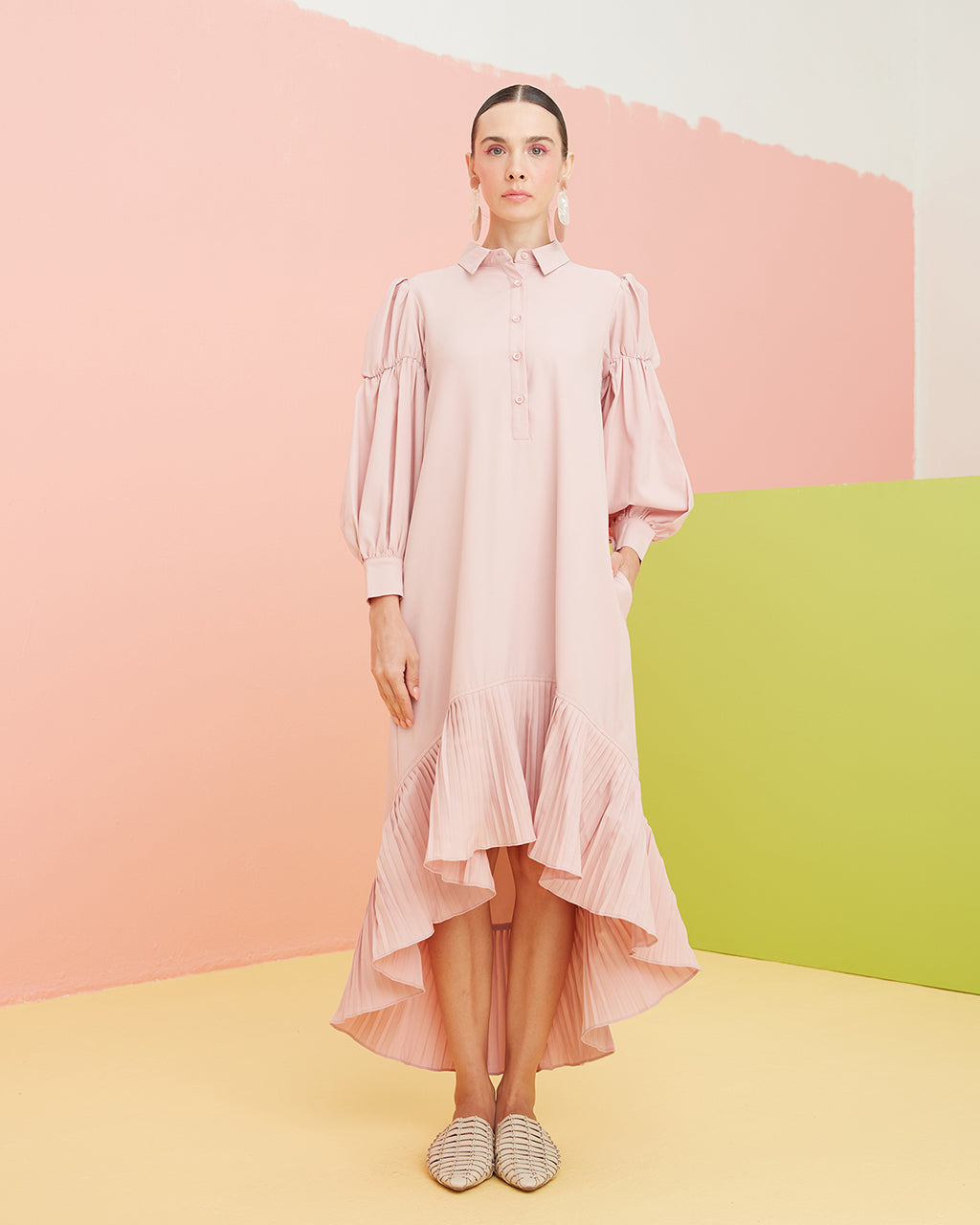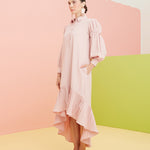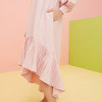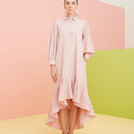 Shirt Dress with Virago Sleeves and Hi Low Pleated Hem