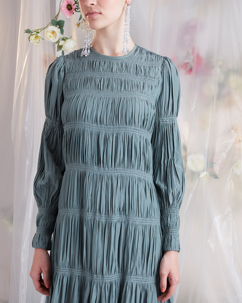 Shirring Detail on Front Bodice & Sleeves